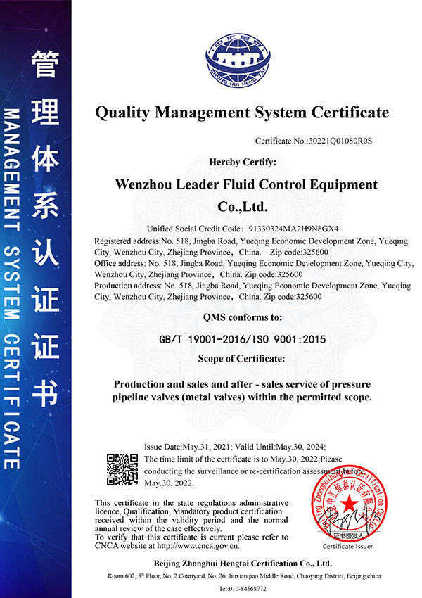我們擁有經驗豐富的閥門質保工程師,品質管理嚴格按照ISO9001質量管理體系程序和相關標準執行,確保產品品質符合客戶要求;
